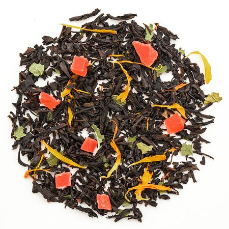 Уникальная по вкусу смесь черных чаев прекрасно гармонирует с ароматным привкусом ананаса, лепестками календулы и сафлора.