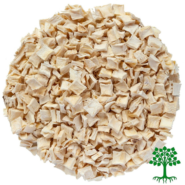Корень сушёный резаный кусочками 10х10х2 мм.