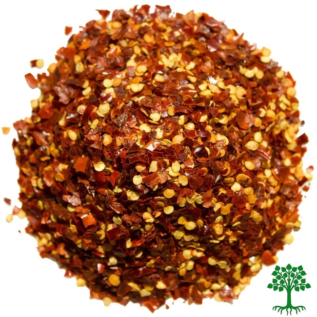Перец красный дробленый (Чили) - обладает всеми свойствами и вкусоароматикой острого перца Чили, но гораздо удобнее в использовании за счет своей мелкой фракционности. Обладает жгучим вкусом, цвет - ярко оранжевый, переходящий в ярко-красный. Размер частиц 3-5 мм.
