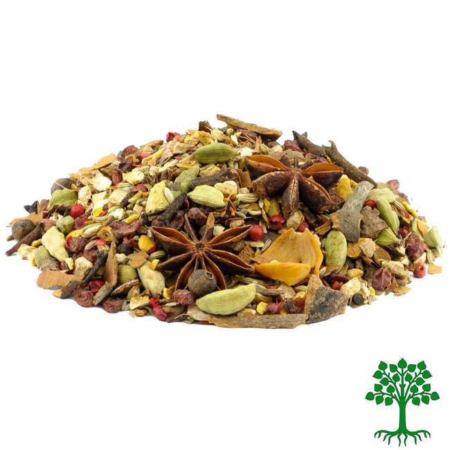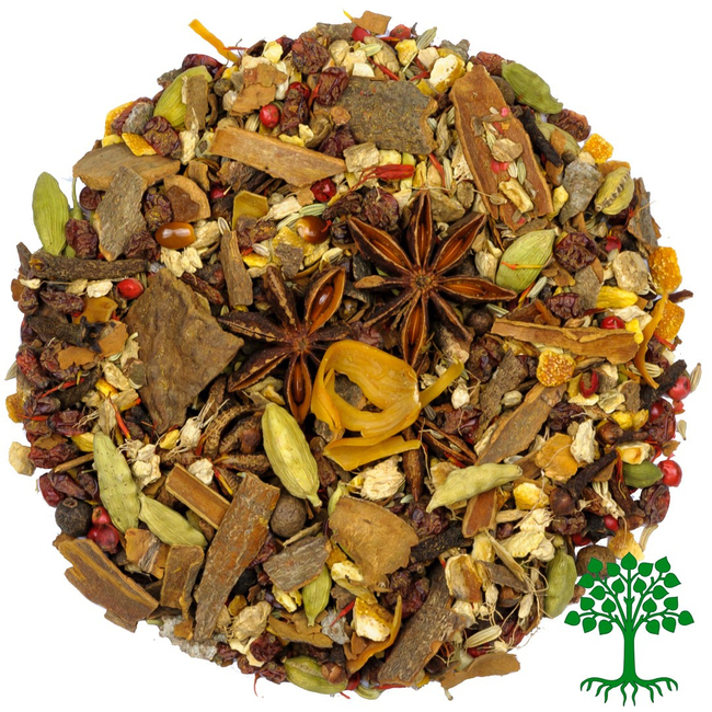 Состав: корица (дроблёная), имбирь, бадьян, кардамон зелёный, анис, апельсин (цедра), барбарис красный, гвоздика, лимон (цедра), фенхель, перец душистый, перец розовый, мацис (мускатный цвет), сафлор.