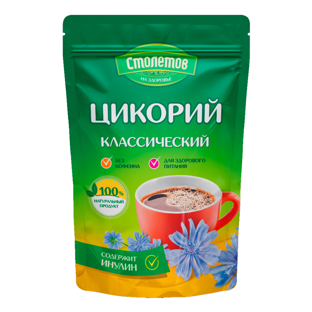 Кофейный напиток «Классический» создан по обновленной рецептуре. В его составе 100% цикорий, бережно обработанный и превращенный в быстрорастворимый порошок. Цикорий станет достойной заменой кофе. Столетов «Классический» — это напиток с высоким содержанием инулина, богатый витаминами и минералами, а его вкус и запах аналогичен кофейному.